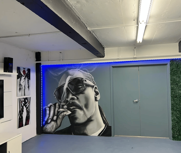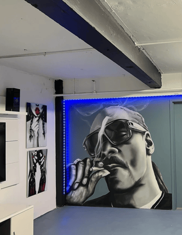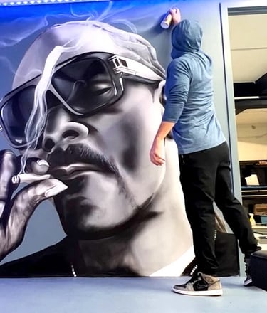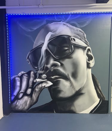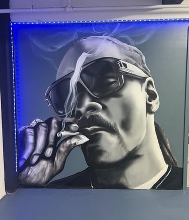 Michael Johnn is a mural artist who works primarily with spray paint and acrylics, creating large-scale pieces that combine realism with street-inspired style. His work often reflects his lifelong connection to hip-hop culture and the laid-back energy of artists like Snoop Dogg. Focused on atmosphere, balance, and storytelling, Michael’s murals bring a sense of rhythm and authenticity to every wall he paints.